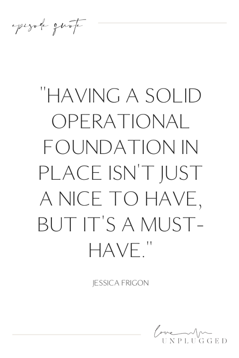 In this episode of the LOVE Unplugged podcast, Jessica explores the art of operations and how it can revolutionize your business. She emphasizes the significance of having a solid operational foundation in place, which goes beyond fancy websites and social media following. By having well-planned processes, efficient systems, and a united team, your business can thrive and achieve the success you’ve always dreamed of.
